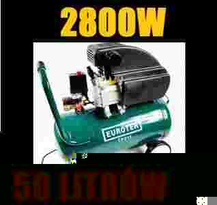 Sprężarka posiada zbiornik o pojemności50 litrów. Maksymalne ciśnienie wytwarzane w butli to 8 barów. Silnik elektryczny napędzający sprężarkę charakteryzuje się mocą 2800W - 3,8 KM. Wyjątkowo mobilna konstrukcja z tłokiem chłodzonym olejem zapewnia stabilność oraz długą żywotność urządzenia. Agregat tłoczący powietrze to sprawdzona konstrukcja stosowana przez największych producentów. Dzięki dużej wydajności i swojej niezawodności jest jednym z najlepszych rozwiązań do małych i średnich sprężarek. Obudowa dzięki swojej konstrukcji dodatkowo chłodzi tłok wiatrakiem podłączonym do silnika. Jednostka posiada regulowane zawory z manometrami wskazującymi ciśnienie. Wygodny włącznik umożliwiający włączenie/wyłączenie urządzenia oraz pracę ciągłą (sprężarka wyłącza się automatycznie po osiągnięciu maksymalnego ciśnienia). Kompresor posiada zawór bezpieczeństwa, wziernik ułatwiający kontrolę poziomu oleju oraz specjalny zawór, który służy do usuwania zgromadzonej wewnątrz zbiornika wody co zabezpiecza przed korozją. Kompresor ten wyposażony jest w pompę smarowaną olejem, zapewniającą dobre odprowadzanie ciepła i zapewniającą długotrwałą pracę. W komplecie z manometrem wskazującym ciśnienie zbiornika jak i reduktorem ciśnieniowym z manometrem z ułatwieniem / odciążeniem rozruchu i zabezpieczeniem termicznym silnika.