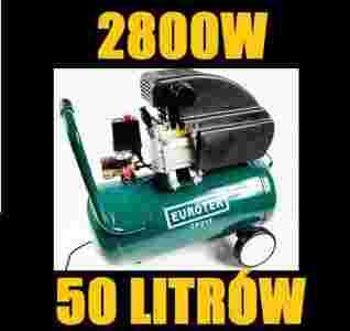 Sprężarka posiada zbiornik o pojemności50 litrów. Maksymalne ciśnienie wytwarzane w butli to 8 barów. Silnik elektryczny napędzający sprężarkę charakteryzuje się mocą 2800W - 3,8 KM. Wyjątkowo mobilna konstrukcja z tłokiem chłodzonym olejem zapewnia stabilność oraz długą żywotność urządzenia. Agregat tłoczący powietrze to sprawdzona konstrukcja stosowana przez największych producentów. Dzięki dużej wydajności i swojej niezawodności jest jednym z najlepszych rozwiązań do małych i średnich sprężarek. Obudowa dzięki swojej konstrukcji dodatkowo chłodzi tłok wiatrakiem podłączonym do silnika. Jednostka posiada regulowane zawory z manometrami wskazującymi ciśnienie. Wygodny włącznik umożliwiający włączenie/wyłączenie urządzenia oraz pracę ciągłą (sprężarka wyłącza się automatycznie po osiągnięciu maksymalnego ciśnienia). Kompresor posiada zawór bezpieczeństwa, wziernik ułatwiający kontrolę poziomu oleju oraz specjalny zawór, który służy do usuwania zgromadzonej wewnątrz zbiornika wody co zabezpiecza przed korozją. Kompresor ten wyposażony jest w pompę smarowaną olejem, zapewniającą dobre odprowadzanie ciepła i zapewniającą długotrwałą pracę. W komplecie z manometrem wskazującym ciśnienie zbiornika jak i reduktorem ciśnieniowym z manometrem z ułatwieniem / odciążeniem rozruchu i zabezpieczeniem termicznym silnika.