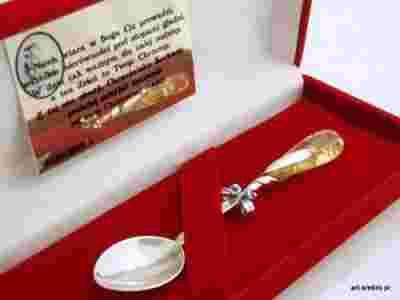 SREBRNA ŁYŻECZKA AMBER+GRAWER PREZENT CHRZEST