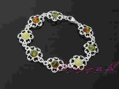 SREBRNA BRANSOLETA KWIATKI Z BURSZTYNEM KOLORY
