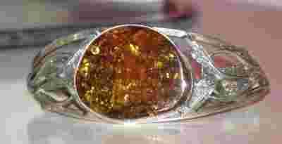 SREBRNA BRANSOLETA Z BURSZTYNEM
