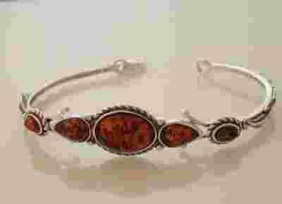Srebrna bransoletka z bursztynem