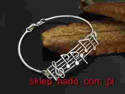 Srebrna Bransoletka z pieciolinia nuta nuty klucz