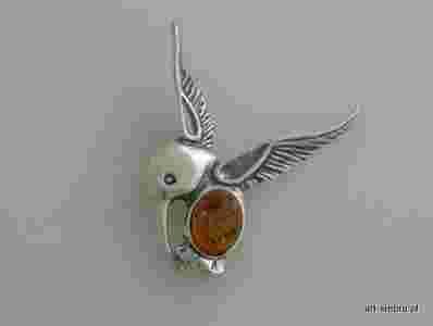 Srebrna broszka koliber srebro 925 bursztyn etui