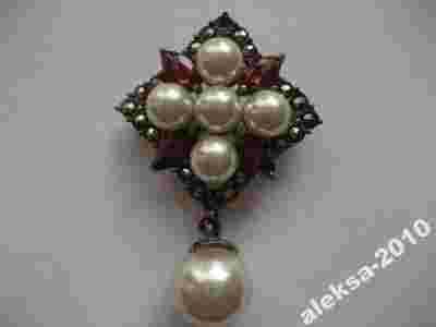 Srebrna broszka - rubiny,perły,markazyty ! Piękna