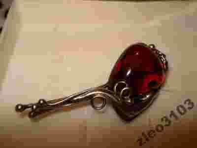 Srebrna broszka z bursztynem