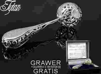 Srebrna grzechotka na chrzest -grawer i tabliczka