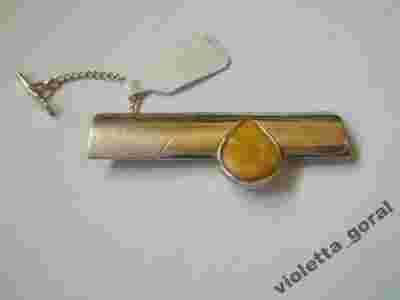 SREBRNA SPINKA DO KRAWATU Z BURSZTYNEM