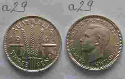 SREBRNE 3 pensy Australia 1943 GEORGIVS VI -Ładne