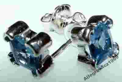 Srebrne kolczyki cyrkonia akwamaryn