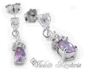 Srebrne kolczyki cyrkonia lilia-róż 1242