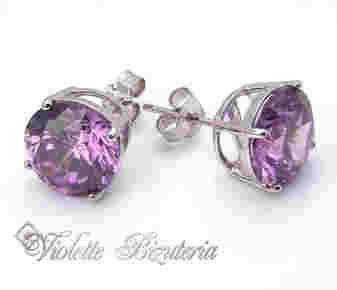 Srebrne kolczyki cyrkonie ametyst 9mm 1109