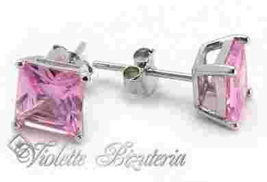 Srebrne kolczyki różowe kwadraty 1144