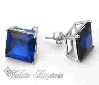 Srebrne kolczyki szafirowe kwadraty 10x10 1110