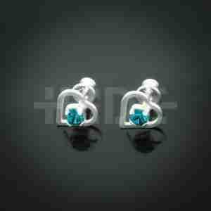 Srebrne kolczyki na sztyfcie w kształcie serduszka z kamieniem swarovskiego w kolorze szmaragdu