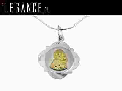 Naszyjnik wykonany z najwyższej próby srebra. Medalik z pozłacanym wizerunkiem Matki Boskiej Częstochowskiej. Tło wizerunku (okrągłe) matowe. Oprawa medalika ozdobna, szlifowana, błyszcząca. Łańcuszek typu linka, szlifowany, błyszczący. Piękna pamiątka Chrztu lub Komunii Świętej.