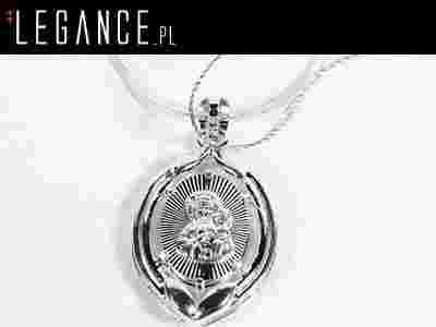 Naszyjnik wykonany z najwyższej próby srebra, składa się z łańcuszka i medalika. Centralnie w medaliku umieszczony wizerunek Matki Boskiej Częstochowskiej. Tło wizerunku promieniście szlifowane, owalne. Całość otoczona stylową, srebrną ramką. Łańcuszek typu linka, szlifowany, błyszczący. Piękna pamiątka Komunii, Chrztu Świętego.
