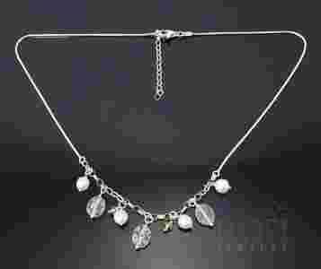 Srebrny łańcuszek z perłą i szkłem Murano