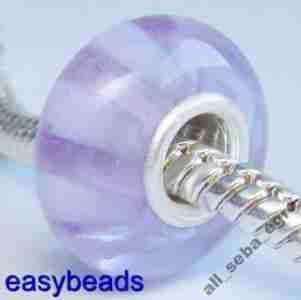 Srebrny 925 rdzen Szklany koralik FIOLETOWY nr158