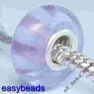 Srebrny 925 rdzen Szklany koralik FIOLETOWY nr158
