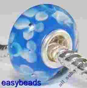 Srebrny 925 rdzen Szklany koralik NIEBIESKI S5