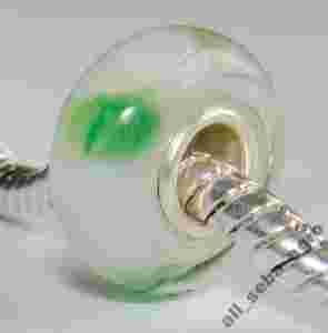 Srebrny 925 Szklany koralik BIALY ZIELONY nr43