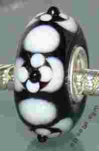 Srebrny 925 Szklany koralik CZARNO BIALY P46