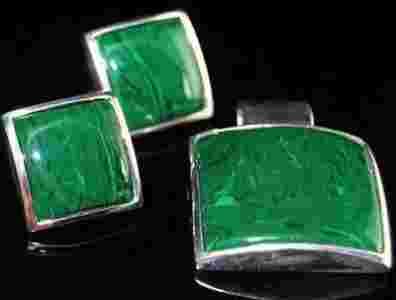 SREBRNY KLASYCZNY KOMPLET MALACHIT SREBRO