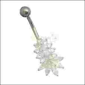 SREBRNY KOLCZYK DO PĘPKA PIERCING Z CYRKONIAMI