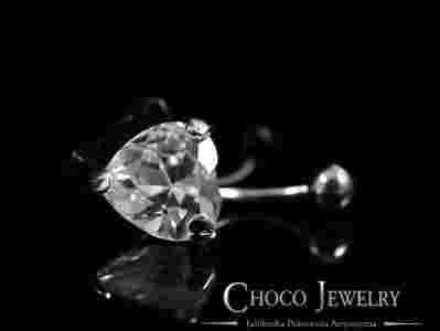 Srebrny kolczyk do pępka serce cyrkonia!na prezent