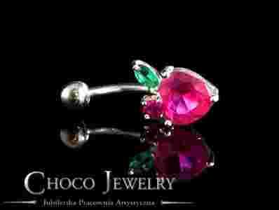 Srebrny kolczyk do pępka wisienka kolory rożowy