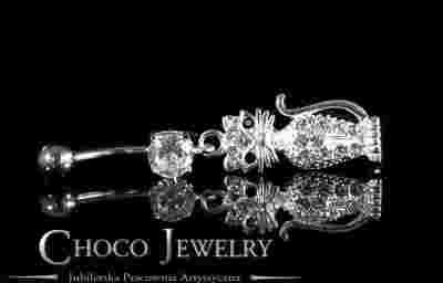 Srebrny kolczyk do pępka z cyrkoniami KOT KOTEK !