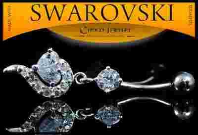Srebrny kolczyk do pępka z cyrkoniami serce KOLORY