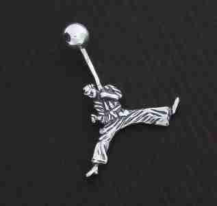 Srebrny kolczyk do pępka karateka