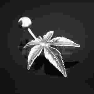 Srebrny kolczyk do pępka liść marihuany hade 01