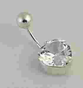 Srebrny kolczyk do pępka Serce 25 biała swarovski