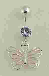 Srebrne kolczyki do pepka wiszace Motyl 01 hade