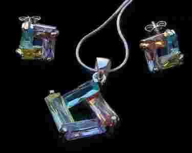 Srebrny Komplet 4 Kolory Cyrkonie na Prezent