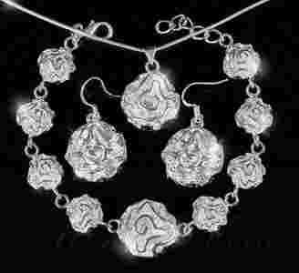 Srebrny Komplet Róże + Łańcuszek Żmijka + GRATIS