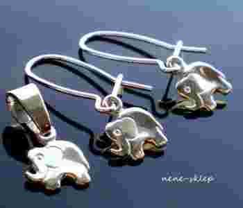 SREBRNY KOMPLET SŁONIKI SREBRO 925 ~~~ PREZENT