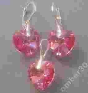 Przedmiotem aukcji jest śliczny srebrny komplet SERCA z kryształkami