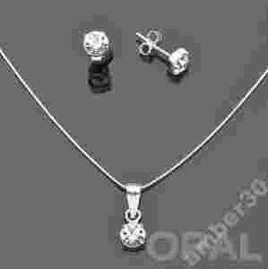 Przedmiotem aukcji jest śliczny srebrny komplet z cyrkonią plus łańcuszek linka.