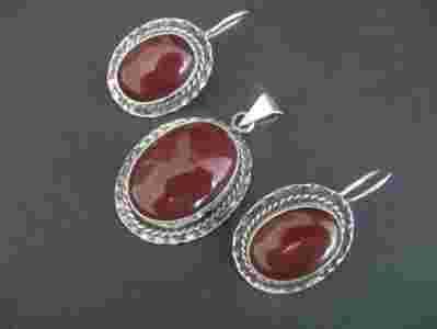 Srebrny komplet z naturalnym karneolem
