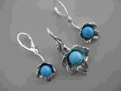 Srebrny komplet z turkusem