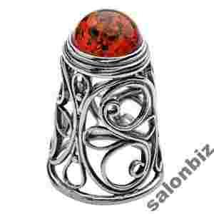 Srebrny naparstek z bursztynem. Ag925.