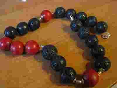 Srebrny naszyjnik z koralowcem i lawą wulkaniczną