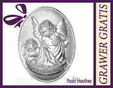 Srebrny Obrazek Anioł Stróż Chrzest + Grawer