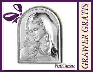 Srebrny Obrazek Matka Boska z Dzieciątkiem+GRAWER