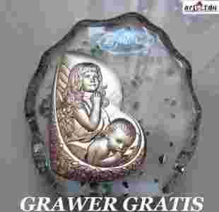 SREBRNY OBRAZEK NA KRYSZTALE PAMIATKA PREZENT TANI