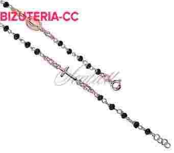 Srebrny różaniec modowy bransoletka pr.925 czarne
